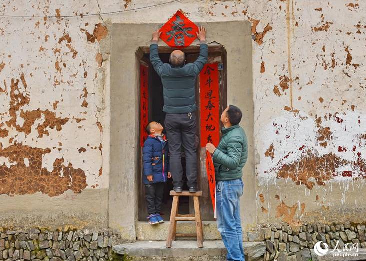 图为贴春联迎新年 摄影:吴灵萱 来源:人民网