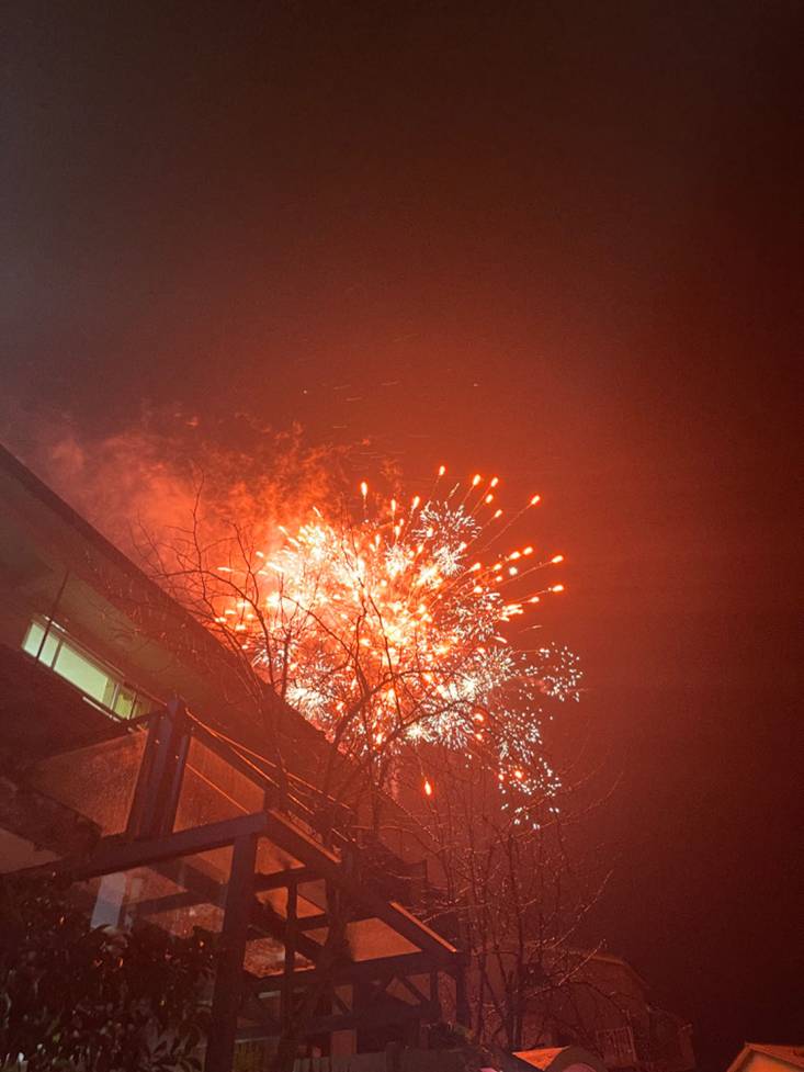 图为除夕夜燃爆竹 摄影:王智霖