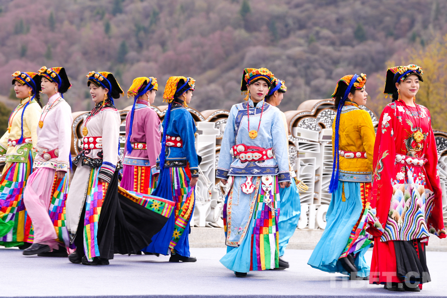 图为“世界的阿坝”2024年系列网络宣传活动启动仪式上嘉绒藏族服饰展示 摄影:赵振宇