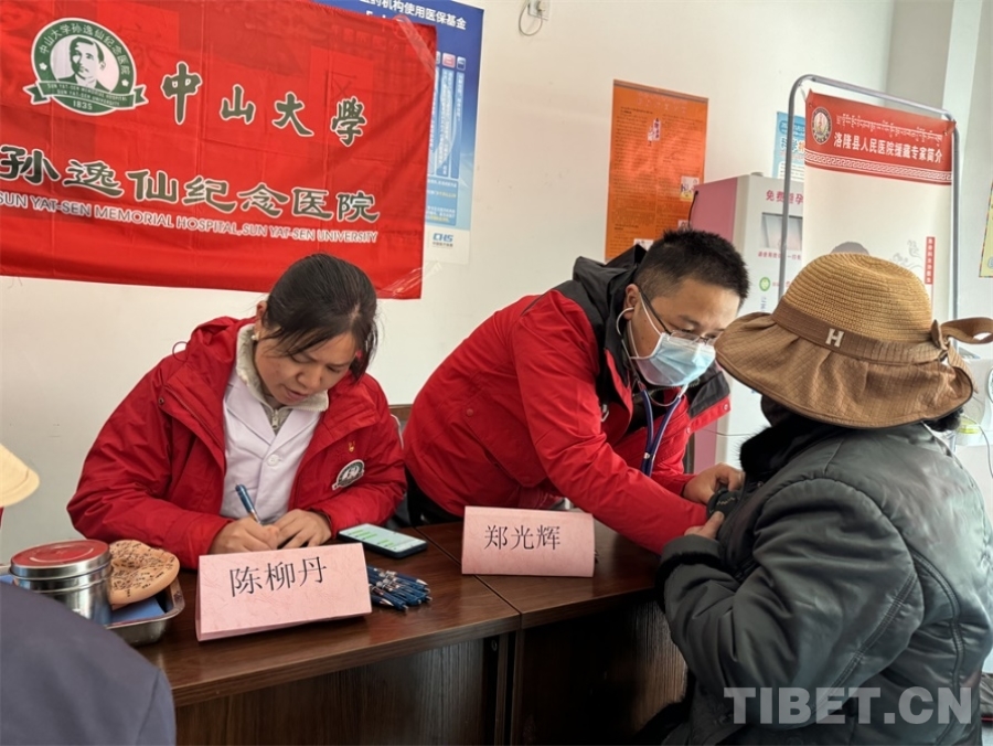 来自广州中山大学孙逸仙纪念医院中医科的陈柳丹在义诊现场为患者开展了中医治疗,“今天我们开展的中医诊疗包括穴位贴的贴敷、艾灸治疗、平衡火罐之类的,我们想让洛隆的更多群众了解急救的知识,了解中藏医疗法。”