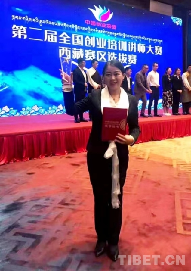 图为付燕在第二届全国创业培训讲师大赛西藏赛区选拔赛中获奖