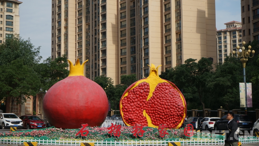 图为香格里拉社区石榴籽家园雕塑