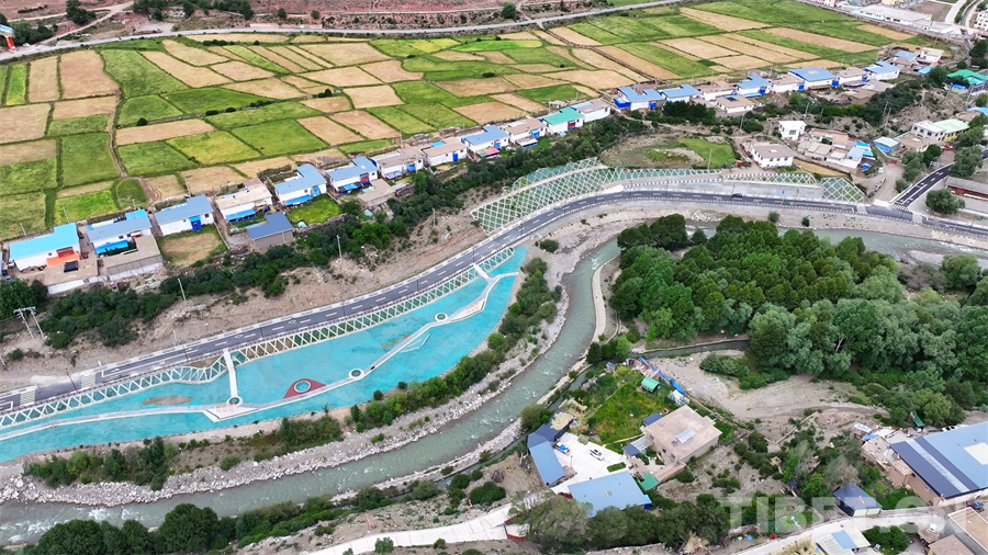 图为洛隆县滨河路,如今河道边已经建设完成的崭新的休闲公园和步道,当地群众日常可以沿着步道散步休憩