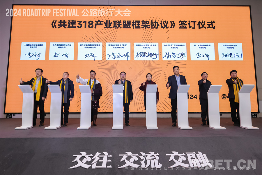 雅安市、甘孜州、昌都市、林芝市、拉萨市、山南市等318沿线的市州共聚一堂,围绕“‘两路’精神赋能,打造民族团结示范走廊”的318主题展开交流发言,并宣读《最美318 雅安到拉萨 文交旅商产业联盟倡议书》,签订了《318民族团结进步联盟协议》。