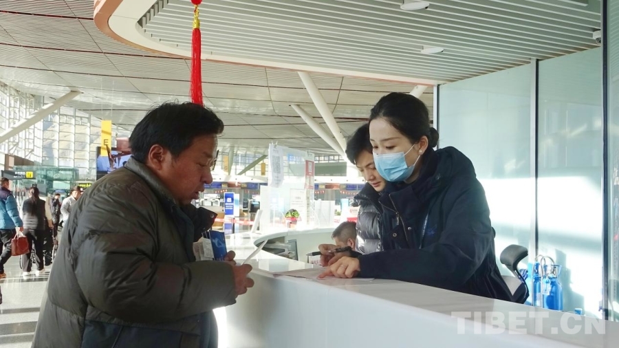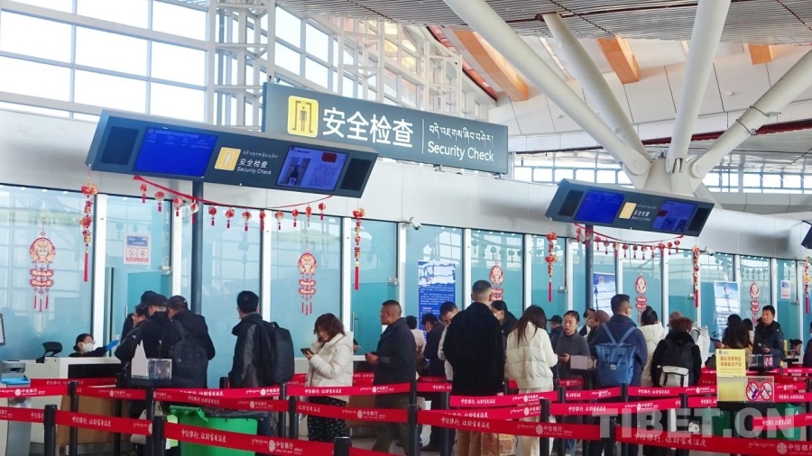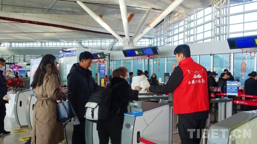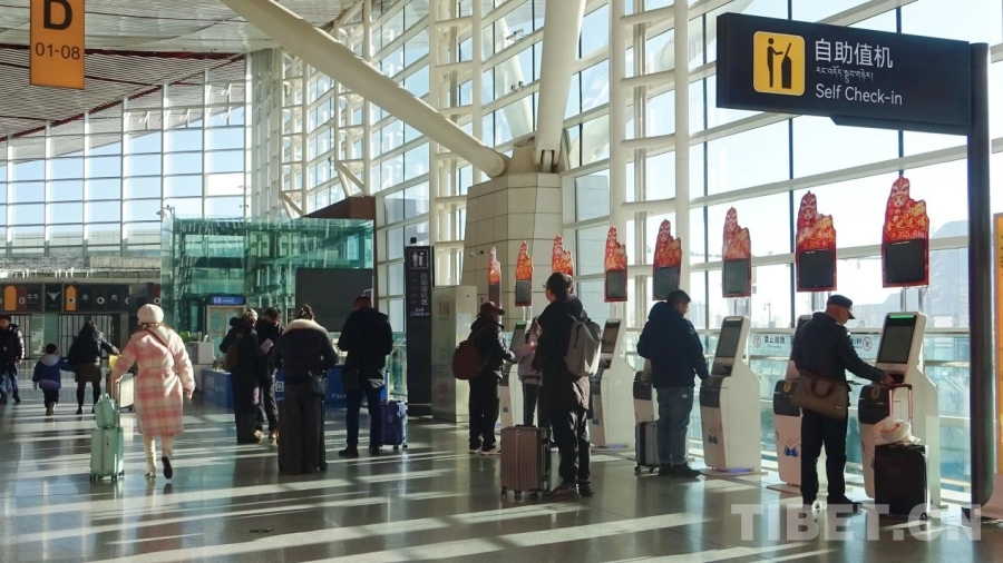 图为春运首日的拉萨贡嘎国际机场