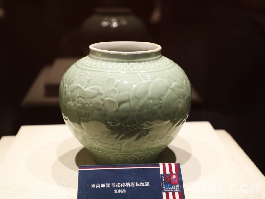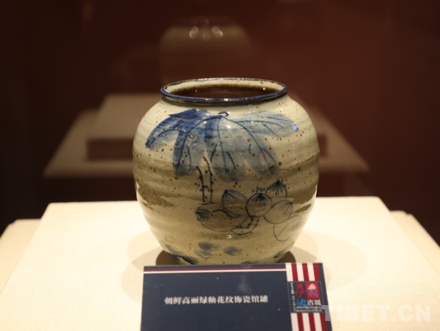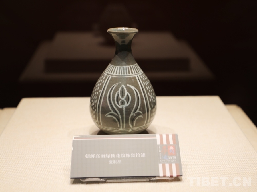 图为朝鲜高丽绿釉花纹饰瓷馆罐(复制品) 摄影:王茜