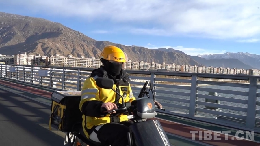 中国西藏网讯 2月25日,临近藏历新年,拉萨的街头巷尾洋溢着喜庆的节日氛围,家家户户都在忙碌着年前的准备工作。当日早上十点,努色已经整装待发,她穿上厚外套、戴上头盔、面巾和手套,打开手机App上线,开始为当地居民送年货。