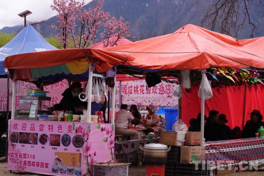 帐篷里,隔壁卡斯木村的村民德吉正忙着给客人做藏面。“桃花节期间,收入会比平时多三四倍。花期过后,根据营业天数向嘎拉村付租金就可以。”