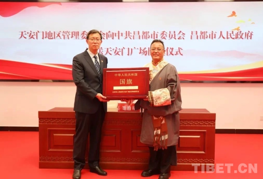 这面由北京市人民政府天安门地区管理委员会向昌都市委、市政府赠送(编号2020—0094)的天安门广场国旗,在西藏自治区成立60周年和昌都解放75周年前夕,从首都北京来到了边疆,极大激发了昌都全市上下的爱国荣誉感和强国使命感,激励各族干部群众砥砺前行、感恩奋进。(中国西藏网 记者/王茜 陈卫国)