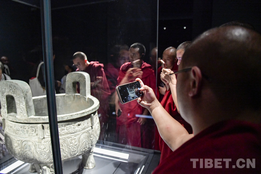 图为西藏佛学院师生在上海博物馆参观西周大克鼎,了解西周文明 摄影:赵振宇
