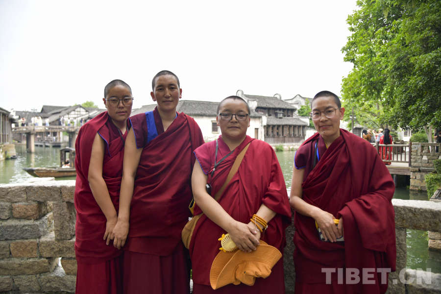 图为西藏佛学院师生在浙江桐乡乌镇感受江南水乡魅力 摄影:赵振宇