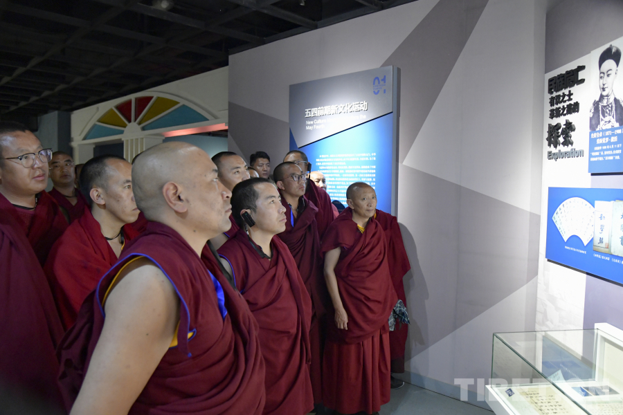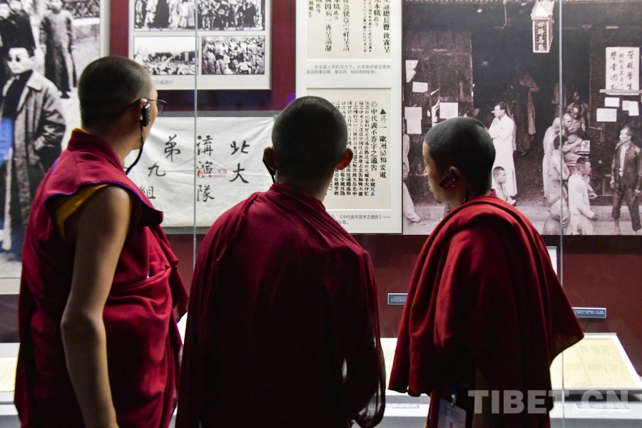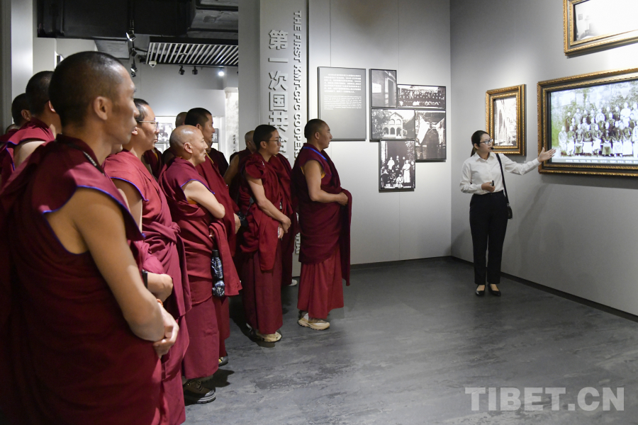 图为西藏佛学院师生在嘉兴五四文化博物馆参观了解中国近代化探索过程 摄影:赵振宇