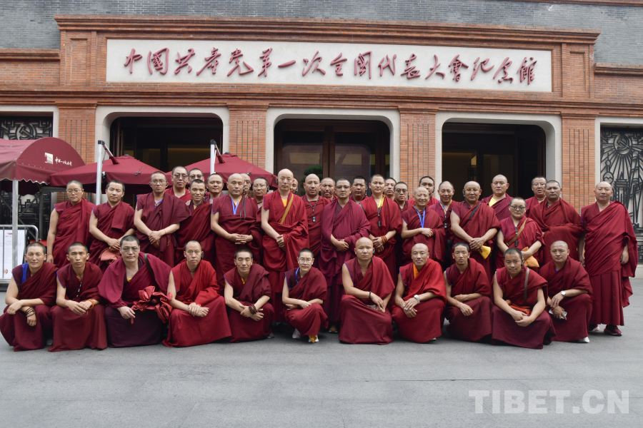 图为西藏佛学院师生在中共一大纪念馆前合影留念 摄影:赵振宇