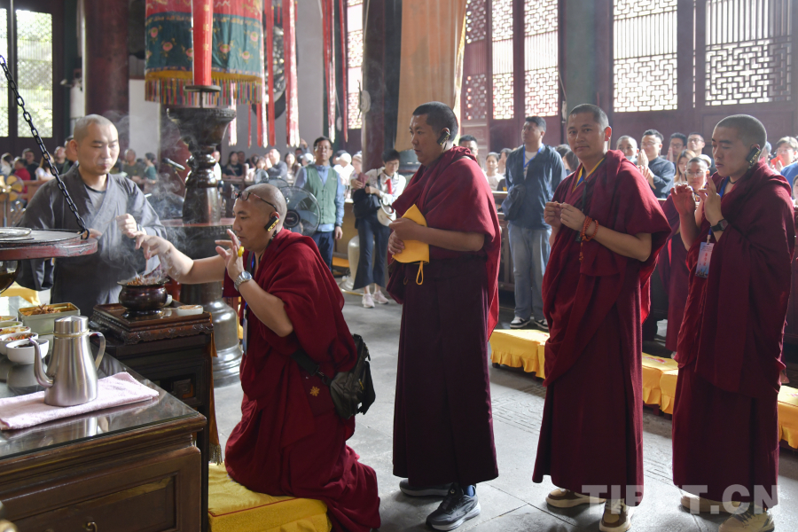 图为西藏佛学院师生在杭州灵隐寺祈福 摄影:赵振宇
