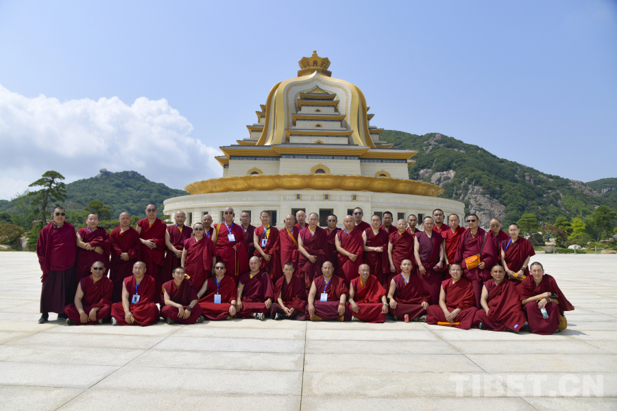 图为西藏佛学院师生在浙江舟山普陀山观音法界合影留念 摄影:赵振宇