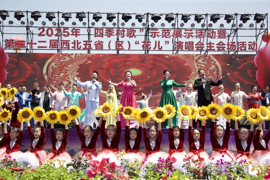 中国西藏网讯 6月30日,2025年“四季村歌”示范展示活动暨第二十二届西北五省(区)“花儿”演唱会在青海省黄南藏族自治州尖扎县启幕。开幕式上,来自青海、陕西、甘肃、宁夏、新疆五个省(区)的近20位“花儿”歌唱艺术家同台献艺,以青海河湟“花儿”为主线,通过独唱、对唱、合唱、歌伴舞等形式,生动展现了这一非物质文化遗产的原生态魅力,为现场游客及观众呈现了一场多民族文化交流交融的艺术盛宴。