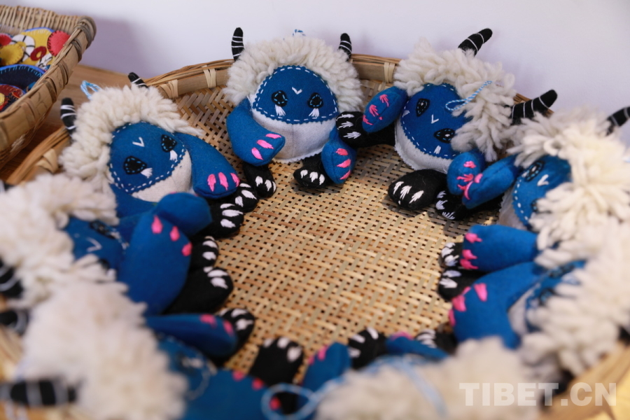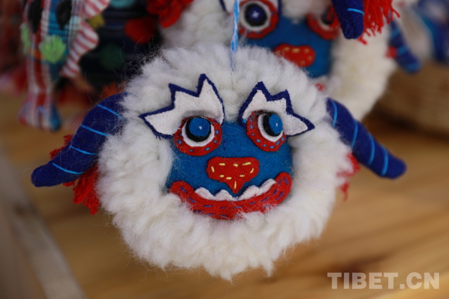 图为夏扎大院里的“卓番林·措瓦”店陈列的手工雪怪挂件 摄影:刘莉