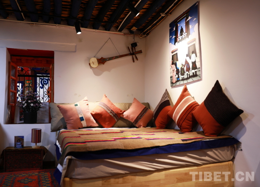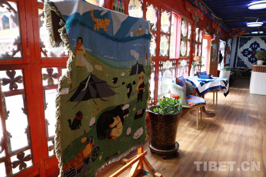 图为夏扎大院里的“卓番林·措瓦”店陈列的手工床品 摄影:刘莉