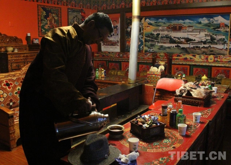 图为那曲申扎县申扎镇姜戎村村民尼玛在家中 摄影:赵钊
