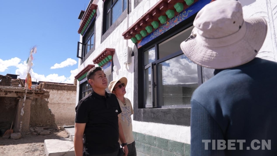 图为次旦南加和队员在群众家检查房屋修建进度