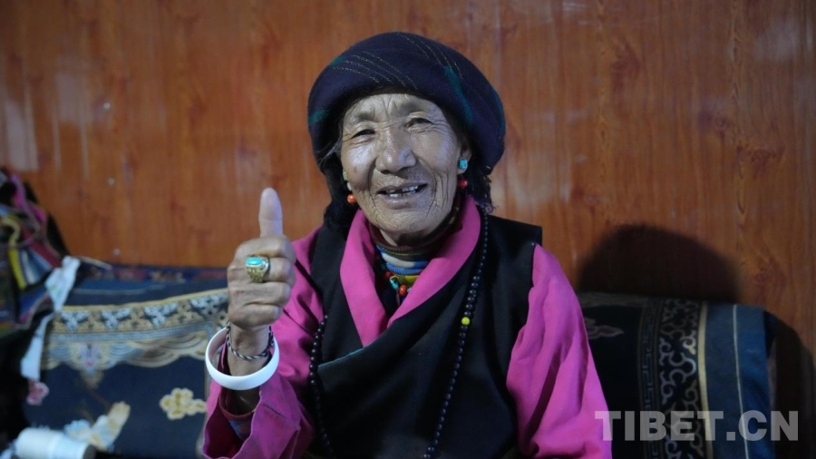 图为格旦奶奶为工作组“点赞”