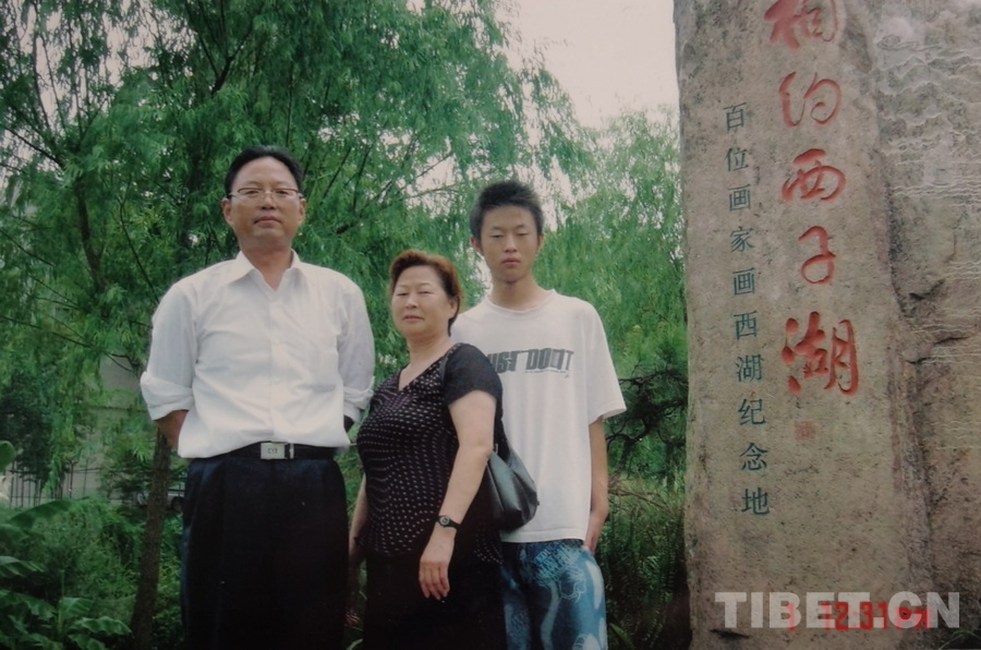 图为王藏江与爱人、孩子在杭州西湖合影