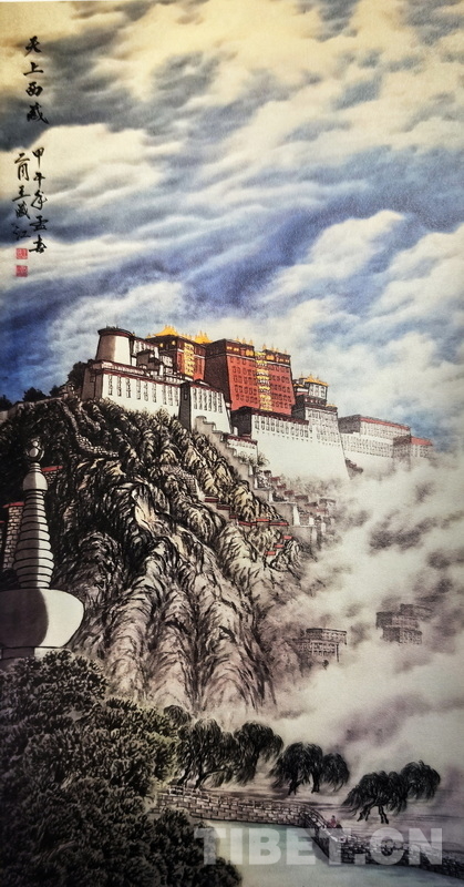 图为王藏江国画作品《天上西藏》180厘米⨉97厘米