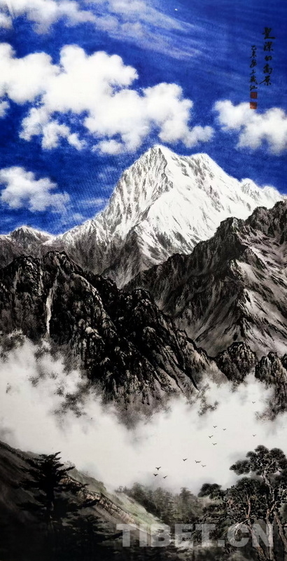 走进王藏江位于四川成都家中的画室,碧空如洗、白云悠游、雪峰巍峨、峡谷深邃、布达拉宫耸立山巅……雄浑的高原风情扑面而来,气势磅礴的国画令人顿感胸襟开阔,仿佛置身高天厚土的西藏。