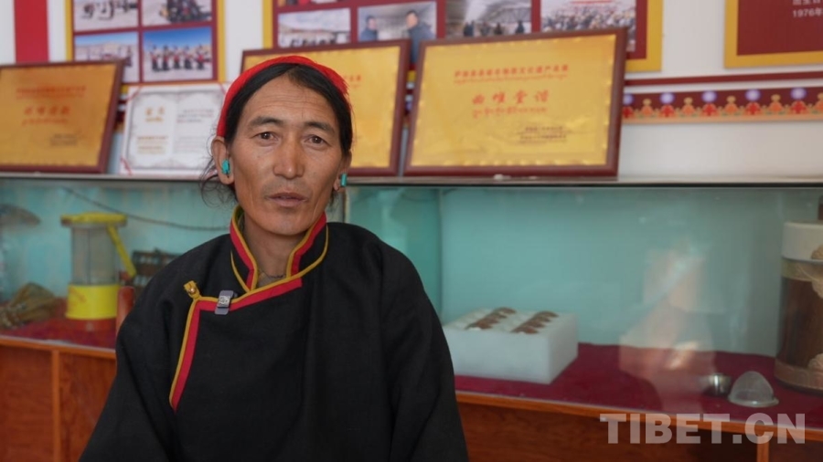 图为萨迦县雄麦乡曲堆村村民、藏戏队员白玛古入