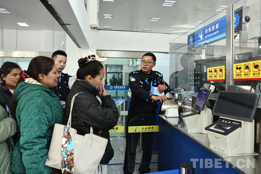 图为聂拉木边检站民警引导旅客扫码通关 摄影:邹兴国