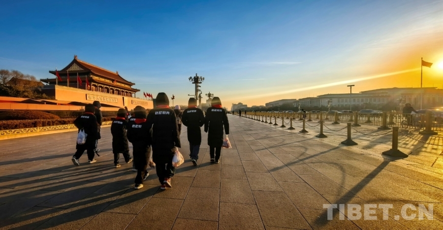 中国西藏网讯 12月26日,西藏自治区那曲市色尼区青少年足球队赴京研学团一行来到了天安门广场,观看升旗仪式后,又走进了故宫博物院,感受中华文明的魅力和智慧。