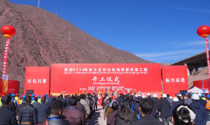 图为G214线加卡至邦达机场段新改建工程开工仪式
