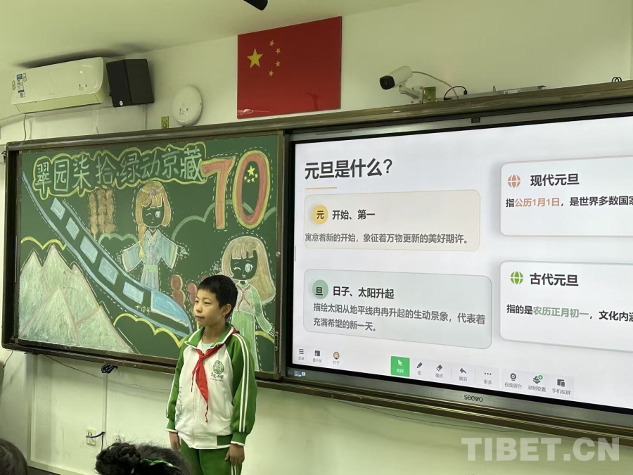 为了欢迎远道而来的藏族小伙伴,翠微小学全体师生精心筹备了以“石榴花开别样红,民族团结一家亲”为主题的系列交流活动。30日上午,一场特殊的联合队会拉开了深入交流的序幕。在队会上,两地孩子相互佩戴红领巾、敬献洁白哈达,以最庄重又亲切的礼节表达彼此间的尊重与祝福。大家共同观看回顾双方从写信相识到奔赴北京、准备礼物、期待相见的温情短片,聆听关于汉族元旦节日习俗和藏民族游牧文化的生动介绍,在增进了解中深化认同。