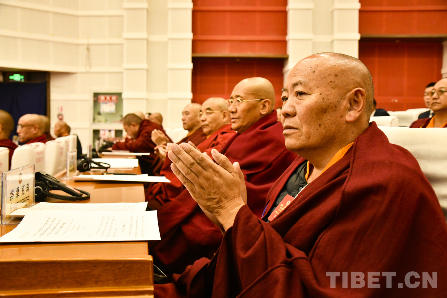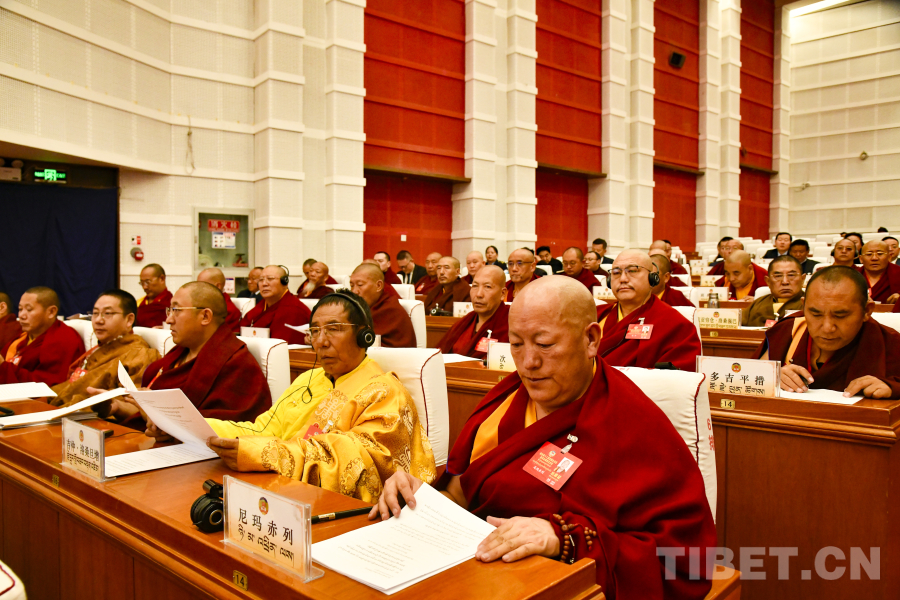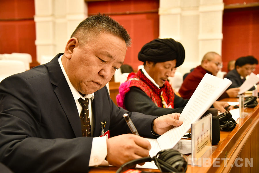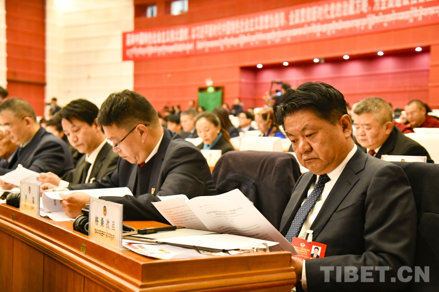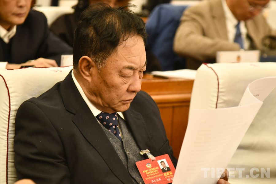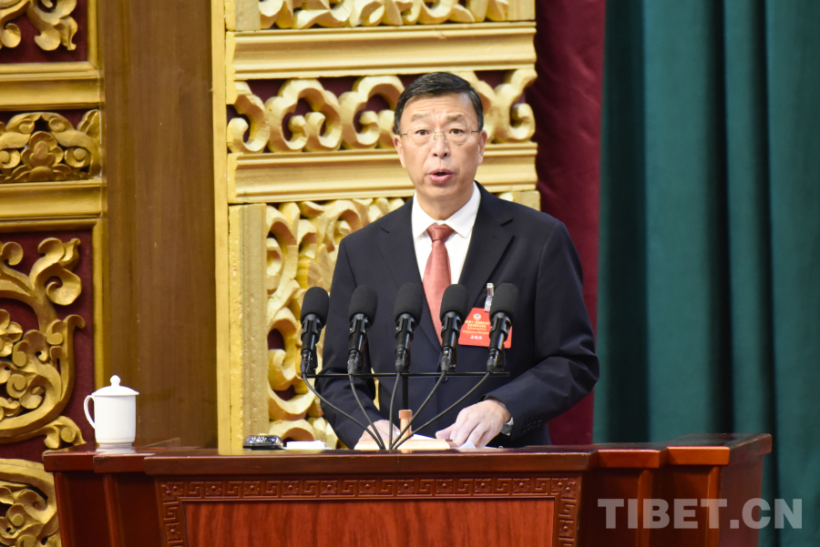 图为西藏自治区政协党组副书记、副主席孟晓林作政协常务委员会工作报告 摄影:赵振宇