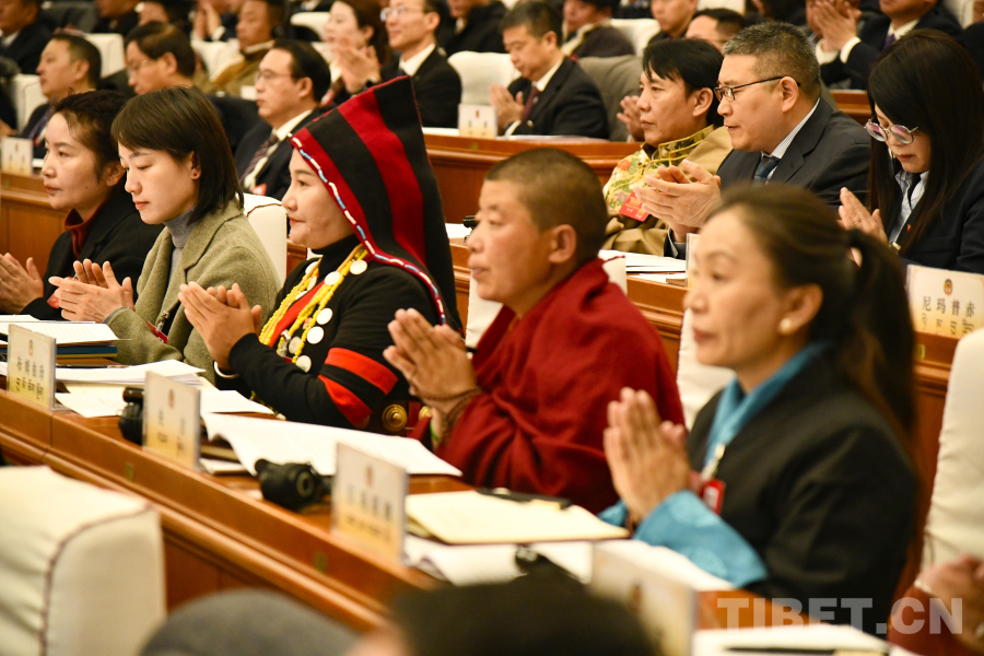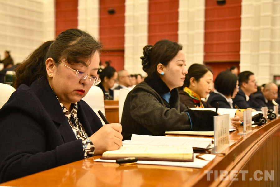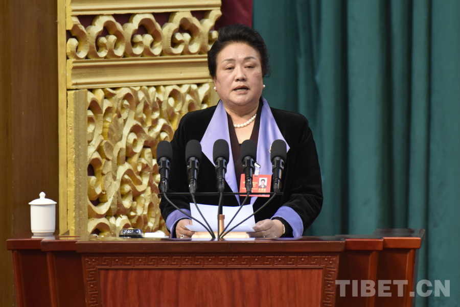 西藏自治区政协党组成员、副主席卓嘎代表政协第十二届西藏自治区委员会常务委员会向大会报告政协十二届三次会议以来的提案工作情况。(中国西藏网 记者/王淑 赵振宇)