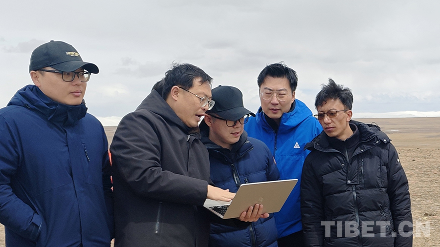 考察组在“云上羌塘草原小镇”项目规划区现场研讨