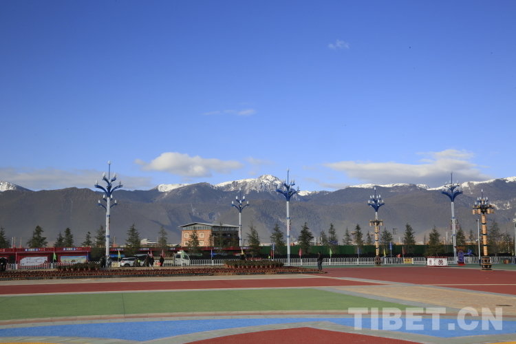 图为石卡雪山,站在香格里拉的广场,可见雪山的全貌,与香格里拉车站遥相呼应。摄影:毕然
