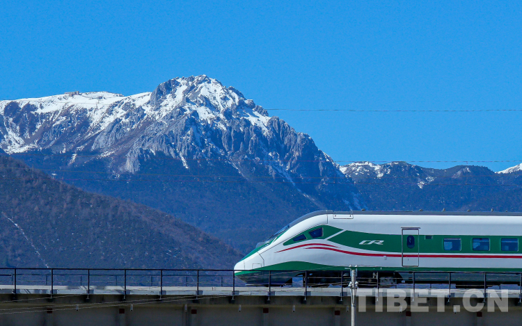 图为“复兴号”动车组列车,铁路沿线植被茂密,也可见美丽的雪山,宛如一幅画卷。迪庆日报社供图