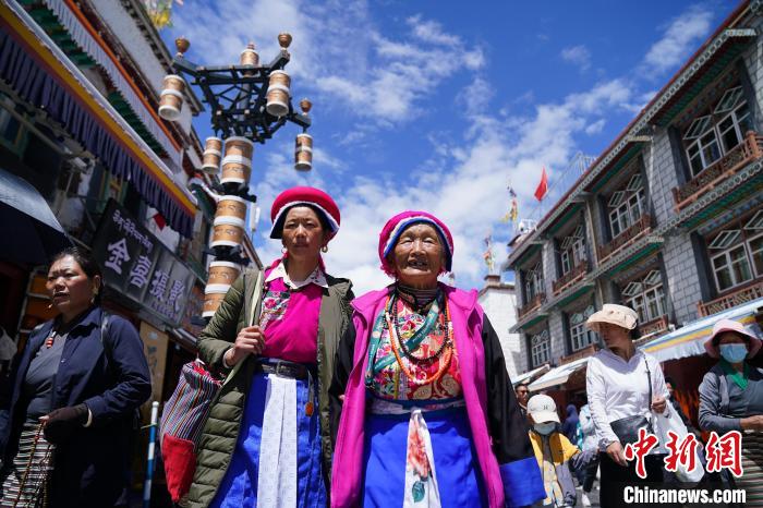 2023年7月31日,七林央宗与母亲卓玛央宗到西藏拉萨旅游。中新社记者 刘冉阳 摄