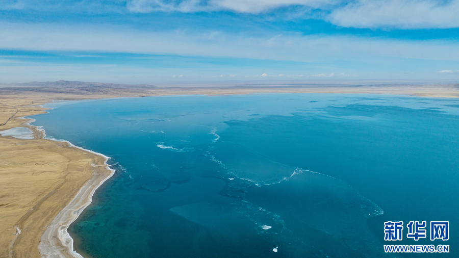 仲冬时节,碧波荡漾的青海湖开始结冰,湖面上漂浮的碎冰如同破碎的琉璃,与纯净的蓝天和远处的雪山相映成趣,呈现出变幻莫测的“湖冰盛景”。