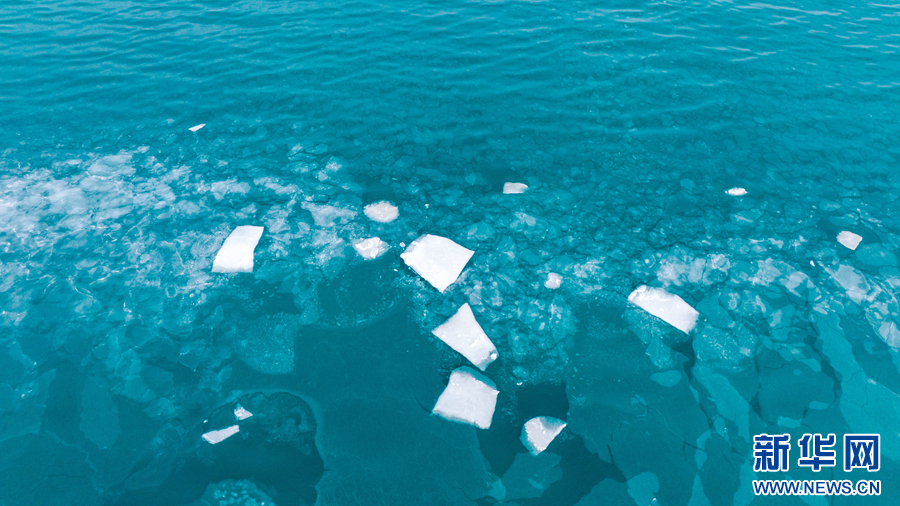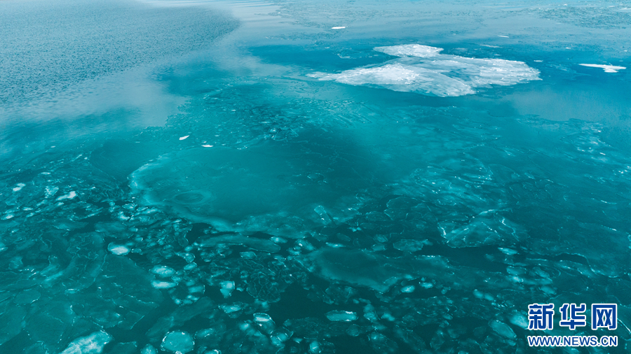 漂浮在青海湖湖面上的冰块。新华网 宋忠勇 摄