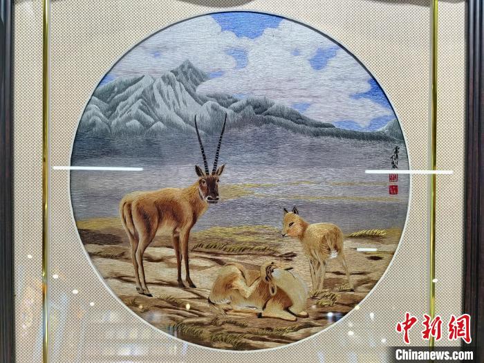 图为藏绣研发中心展厅内陈列的藏绣作品《獒》。祁增蓓 摄