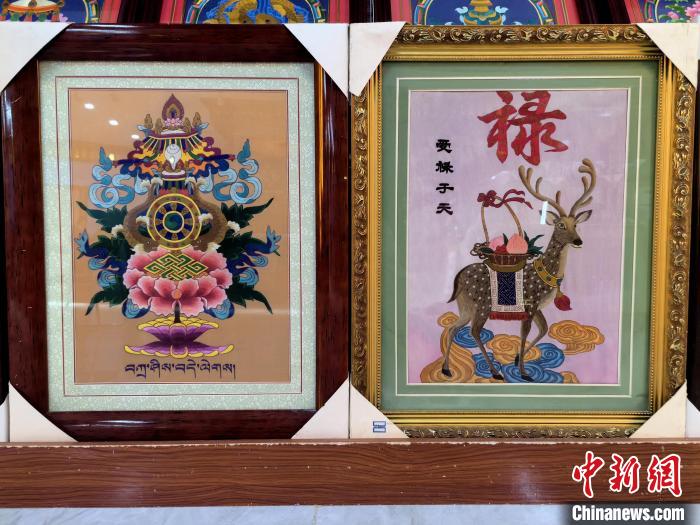 图为藏绣研发中心展厅内陈列的藏绣作品。祁增蓓 摄