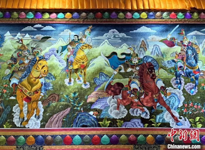 图为藏绣作品《格萨尔岭国三十员大将》部分展示。祁增蓓 摄