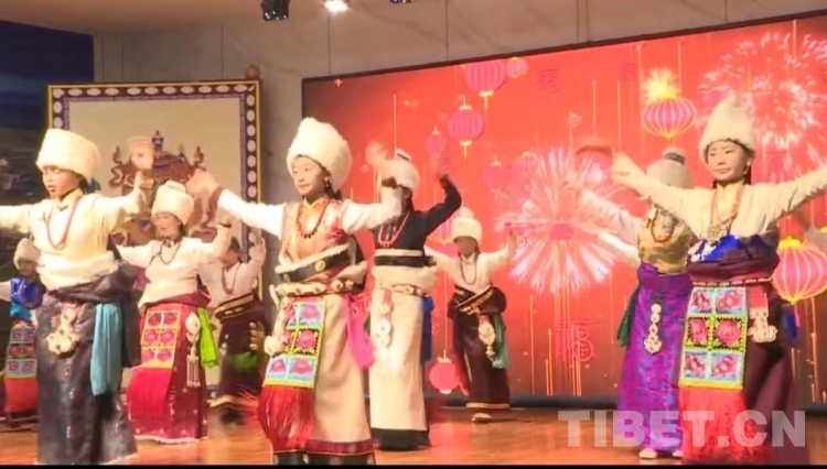 村晚在“新年新气象,愿大家的生活如同高原上的雄鹰,自由翱翔在幸福的天空;愿每个人的笑容如雪山之巅的雪莲花,纯洁而美丽...扎西学!”《吉祥礼赞》的祝福词中开始。