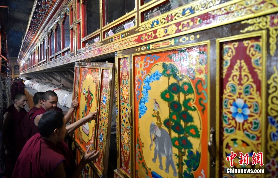 8月16日,拉萨哲蚌寺举行展佛活动。
