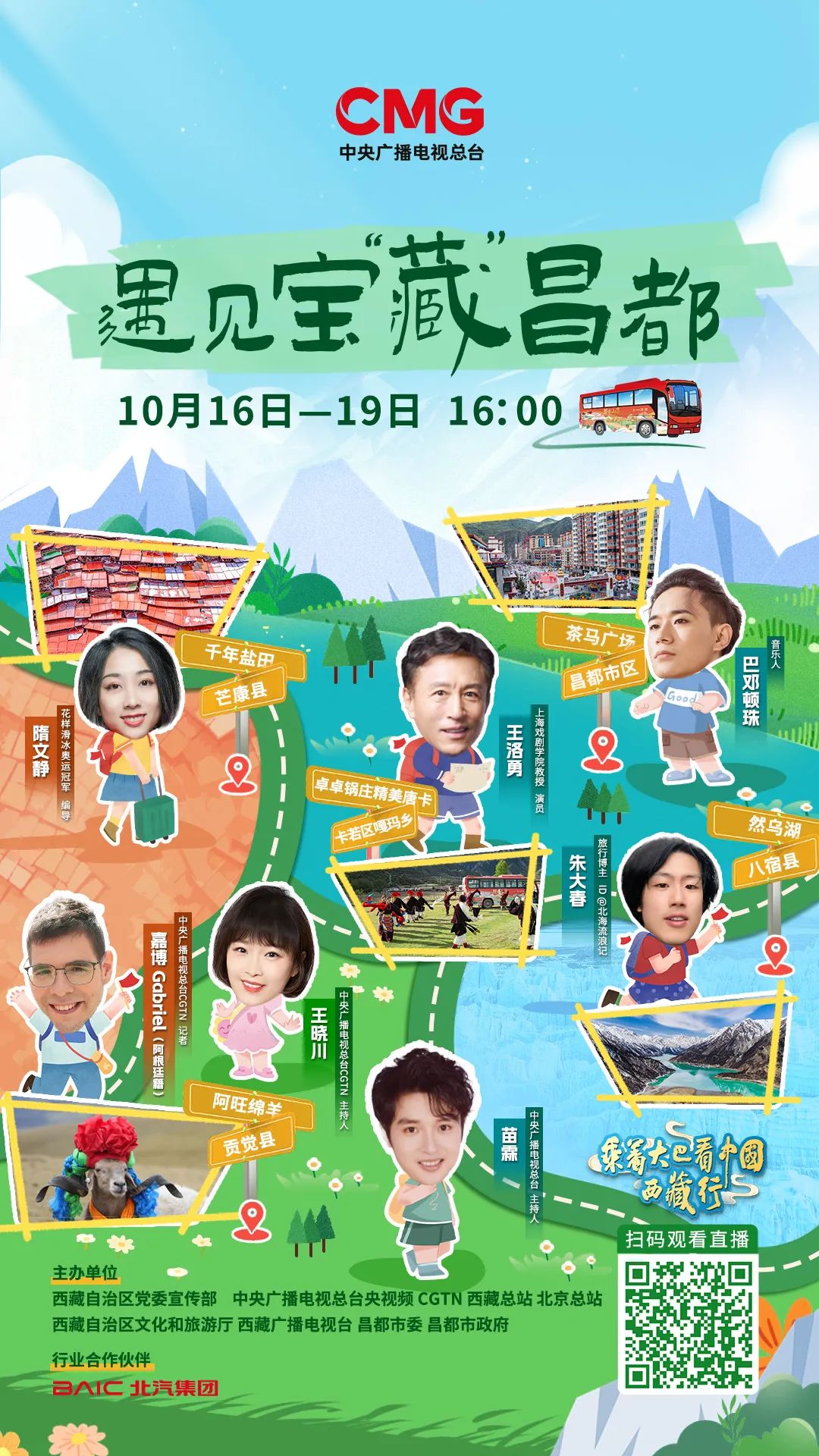 10月16日至10月19日,“跨越山海 格桑花开——乘着大巴看中国 西藏行”大型融媒体活动播出,总台大巴车开进西藏昌都,自芒康过贡觉,经卡若到八宿,海拔从2300米一路攀升,探访团深入千年盐田,探秘万年冰川,品尝原生态的“阿旺绵羊”,领略中国民间文化艺术之乡——嘎玛乡的风采,多彩的地貌风光与璀璨的藏东文化,尽显昌都文化魅力。本次活动由西藏自治区党委宣传部、中央广播电视总台央视频、CGTN、西藏总站、北京总站和西藏自治区文化和旅游厅、西藏广播电视台、昌都市委市政府联合主办。