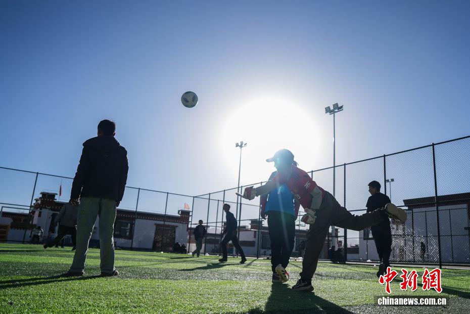 2025年1月7日,西藏定日发生6.8级地震。时隔近一年,1月5日,记者走进西藏自治区日喀则市定日县长所乡森嘎村,只见藏式新房错落有致,崭新的房屋内饰精致美观,屋顶上,太阳能热水器整齐排列,水电气等生活配套一应俱全。村内超市里,各类蔬菜瓜果摆放得满满当当,货源充足。村民们三四人围坐在一起玩骰子,欢声笑语不断,村庄民生秩序已全面恢复。据悉,此次日喀则地震灾后重建覆盖7县47乡镇486村,2.2万余户重建民房、1.05万余户维修加固民房已全部竣工交付,受灾民众喜迁新居。图为森嘎村的孩子们在踢足球。