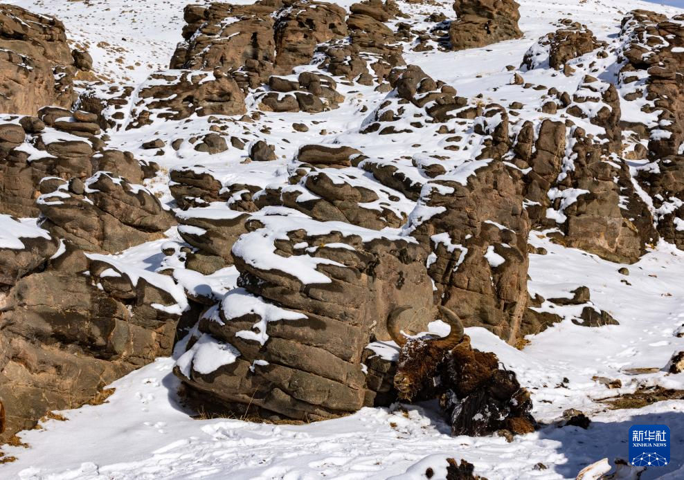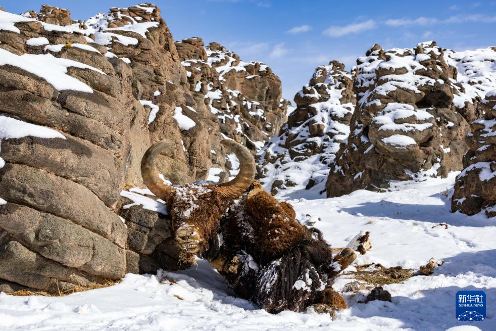 4月10日在“巴毛穷宗”地区拍摄到的野牦牛遗骸。新华社记者 姜帆 摄
